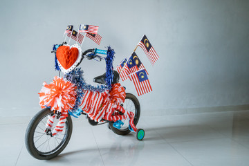 Happy Malaysian Family Decorate Bicycle With Flag For Independence Day Celebration Malaysia Merdeka Basikal Hias 31st Wall Mural 31 Odua Images